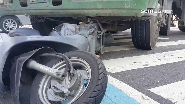 民眾驚呼,驚險車禍就發生在上午11點多高雄民族、中正路口,看看現場碎片散落一地,婦人所騎的機車還卡在砂石車車頭。