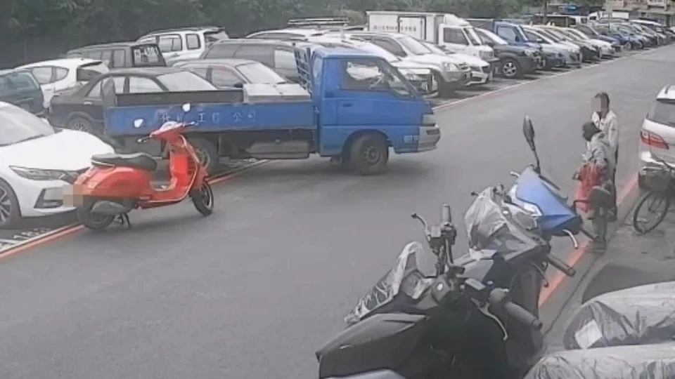 事發在2日中午12時許,新北市蘆洲區民族路408巷內,監視器畫面正好拍下整個離譜的移車過程,當時有輛貨車經過此處,似乎是發現整排停車格都被停滿滿,2名男子找不到車位,看見其中有一個車格被一輛橘色偉士牌黃牌大型重機車停走,竟然直接徒手把黃牌大型重機從停車內搬出來,移置到一旁的汽車前方放著,而貨車司機就直接把貨車停進去重機的車格內,隨後人便離去。
